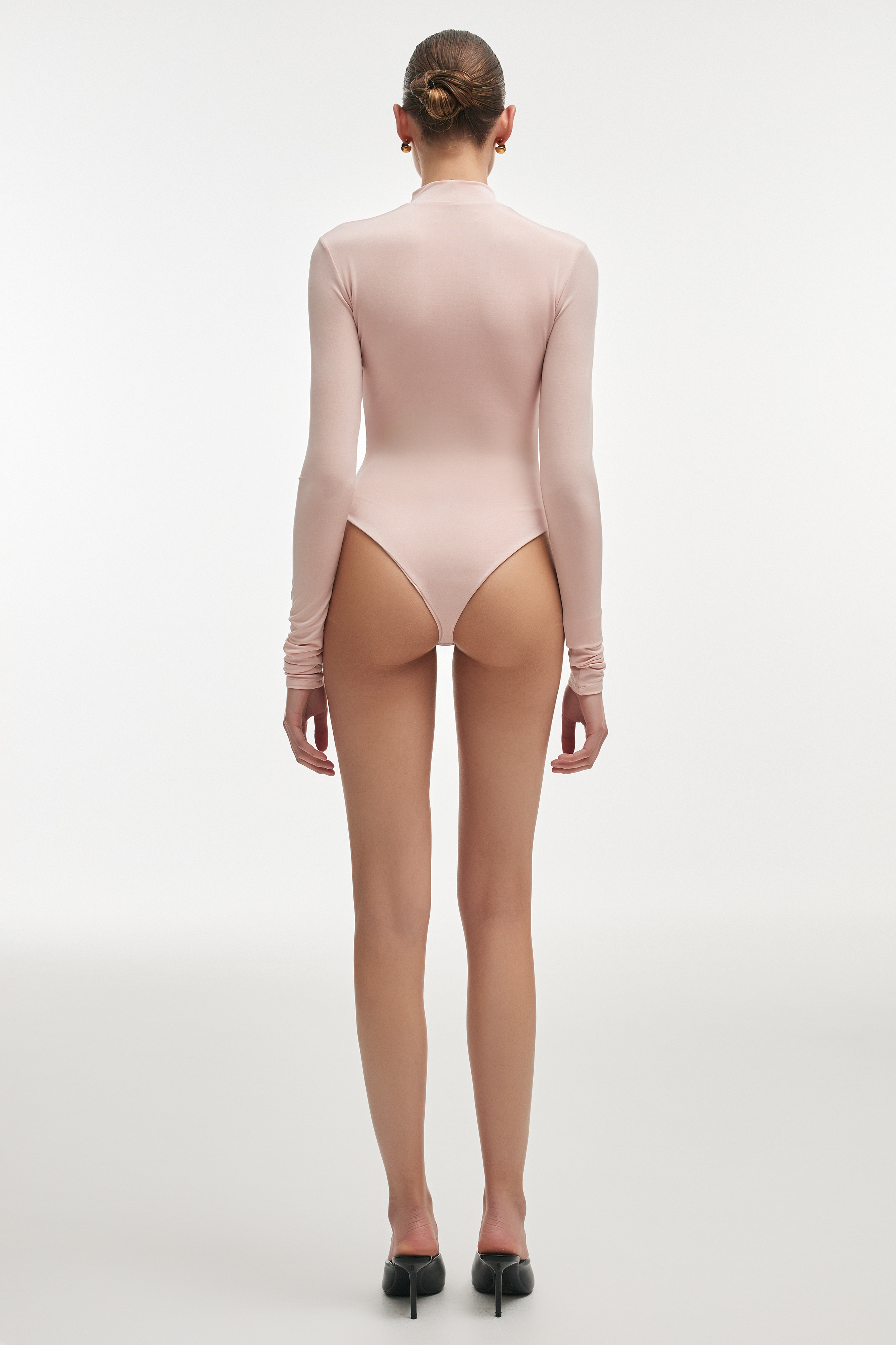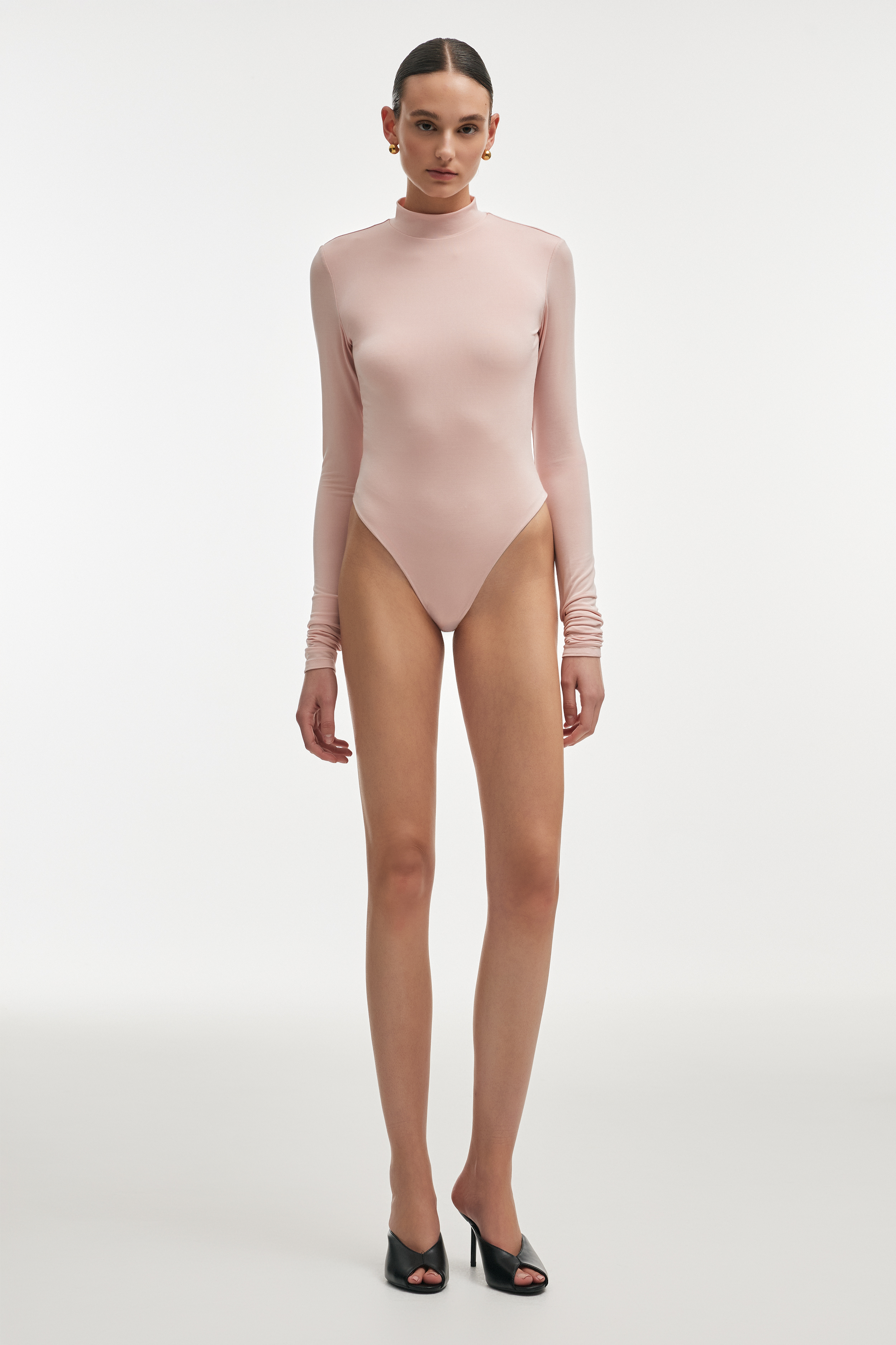 • Cut in a close-fitting shape with a high neckline and long sleeves, it creates a sleek, elongated line.